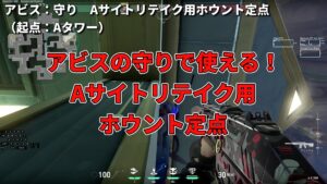 Aメインから投げてAサイトを索敵できるエントリー用定点です。 高所に着弾するため壊されにくいおすすめの定点。 本定点の概要 起点:Aメイン 対象:Aサイト 投げ方:ジ…