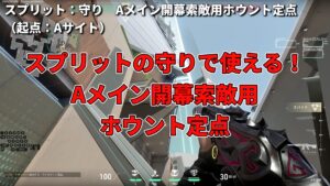 Aヘブンから投げてAメインを索敵できる定点。 高所に着弾するため壊されにくくAメイン全域を索敵できる。 本定点の概要 起点:Aヘブン 対象:Aメイン 投げ方:ジャンプ…