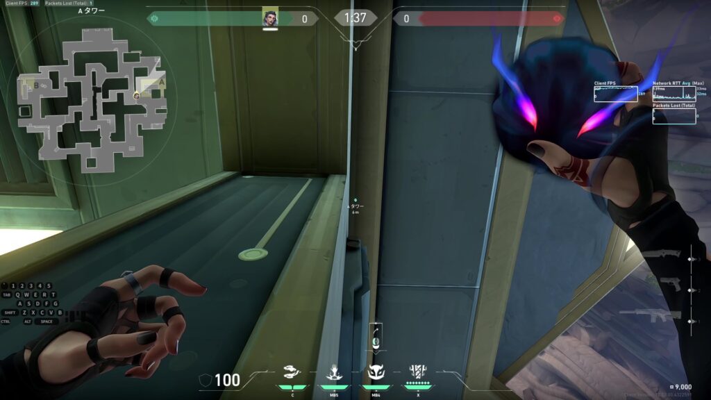タワーのモク越しに敵が映れば一方的にキルを取ることができる。