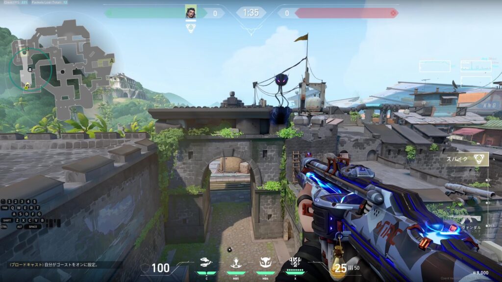 門の上に着弾し、Bメイン内を索敵することが出来る。