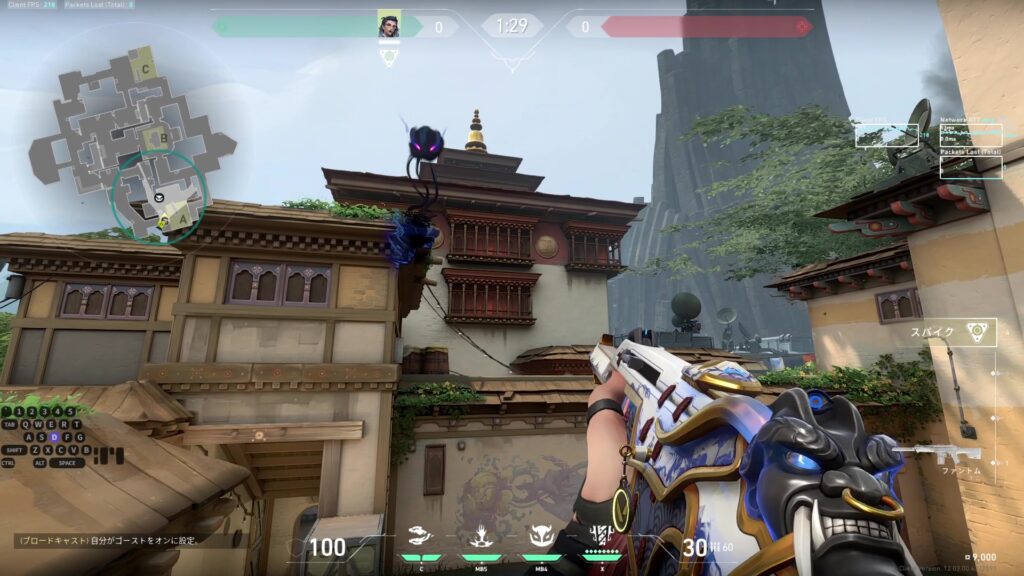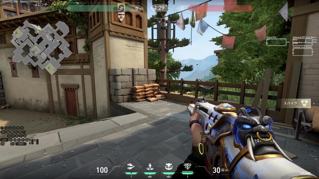 Aサイト全域を索敵できる。Aショート出口付近で角待ちしている敵も索敵できるため非常に便利。