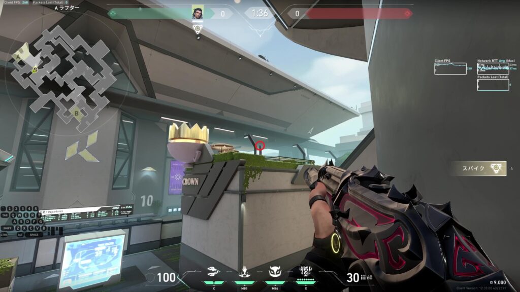 AメインとAサイトの間の看板の上に着弾する。Aメインを広く索敵できる。