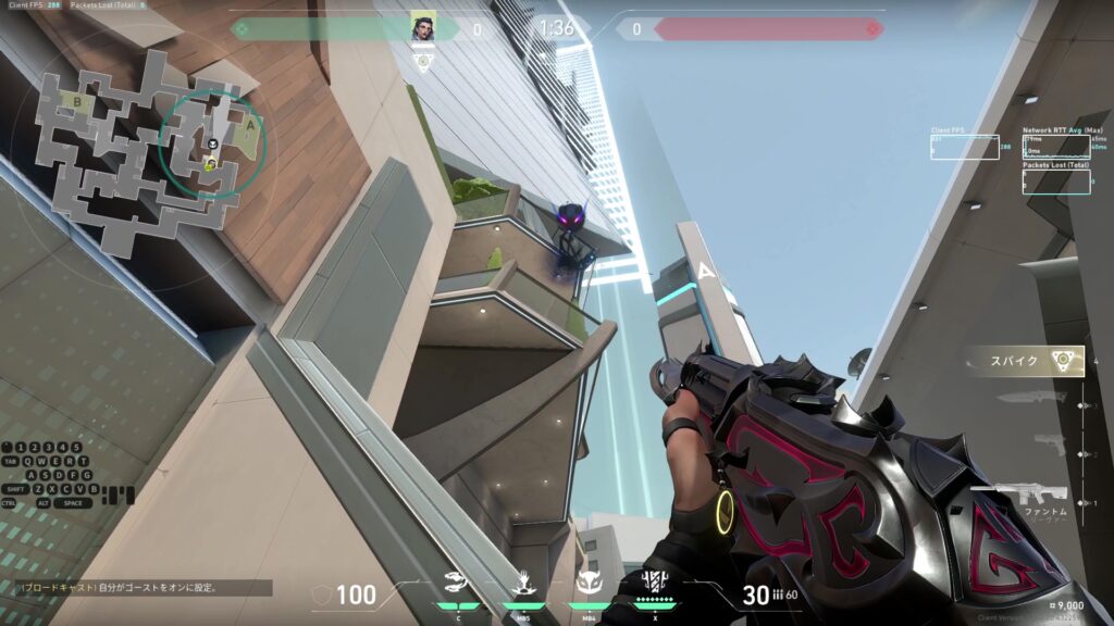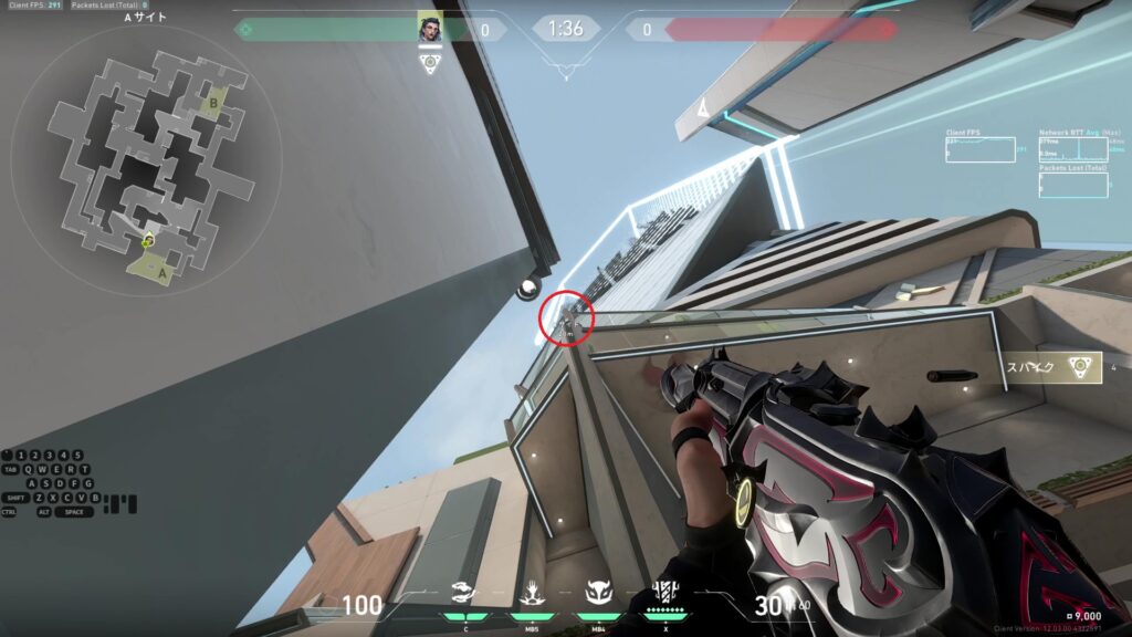 Aヘブンの上部に着弾する。高所のため壊されにくく、Aメインを広く索敵できる。